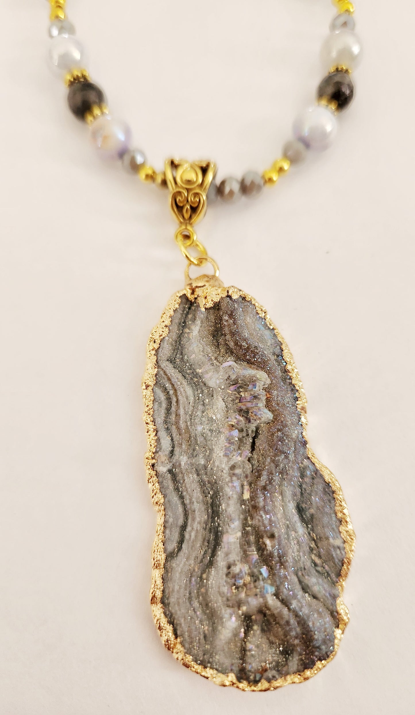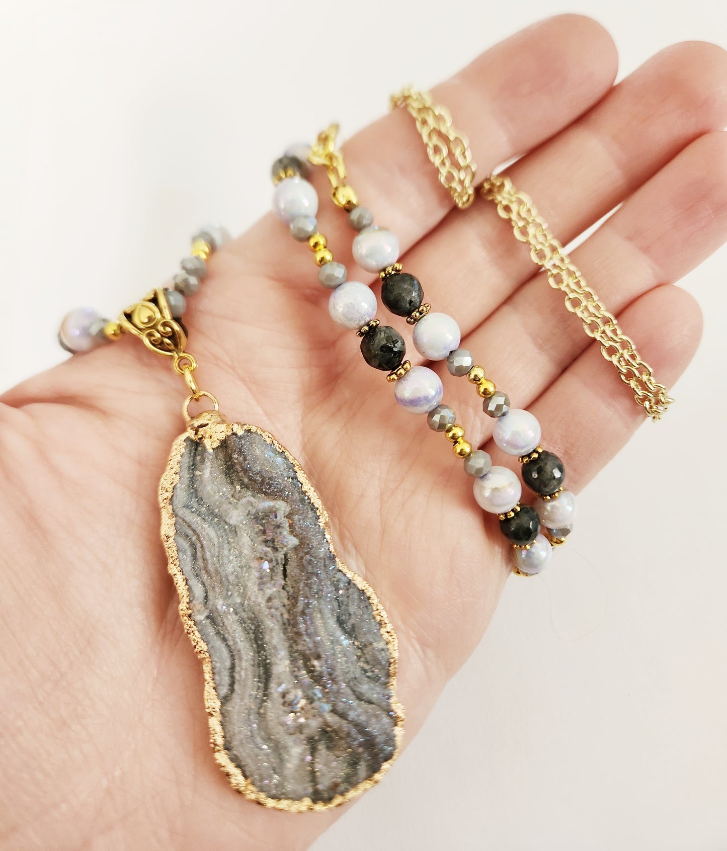 Druzy Quartz gemstone gold chain necklace