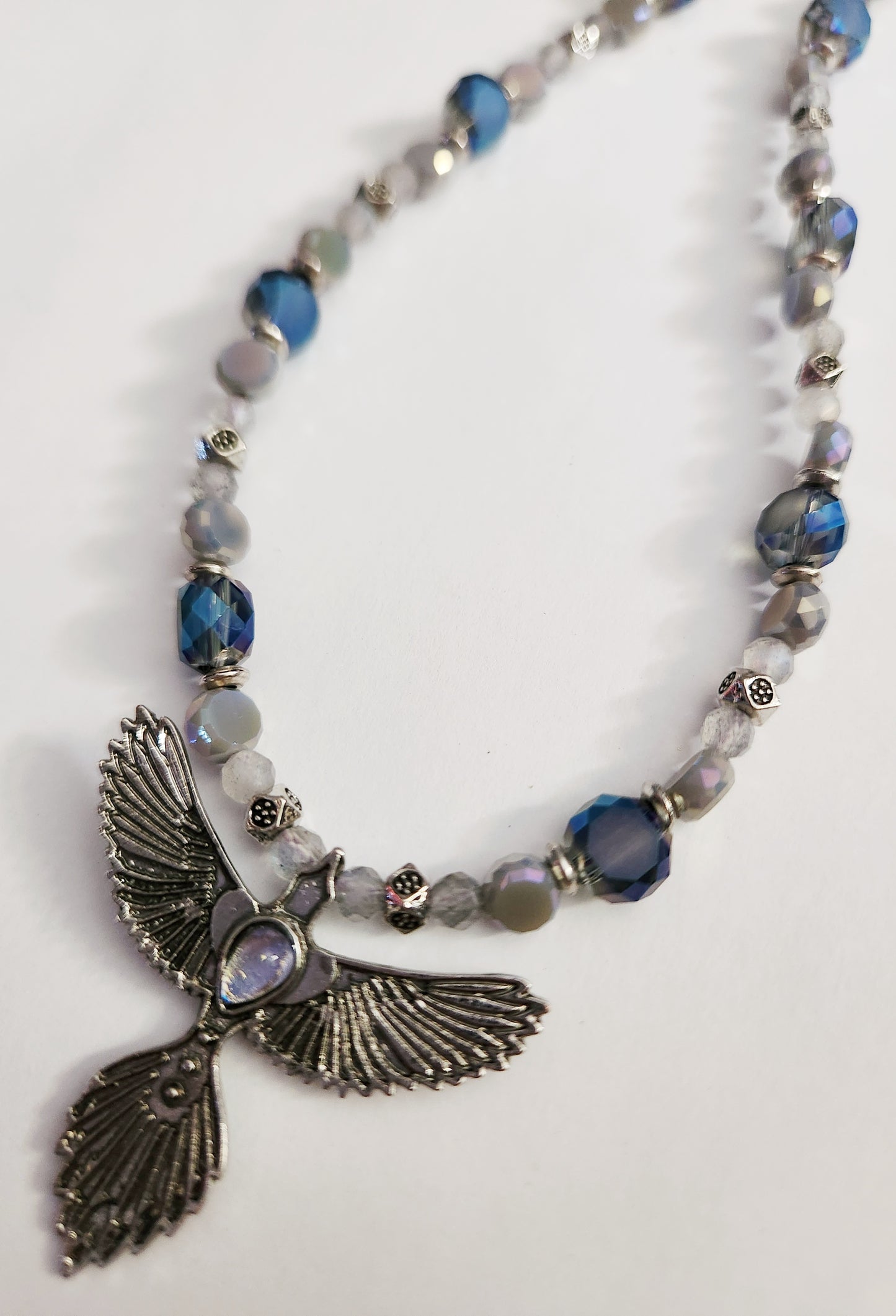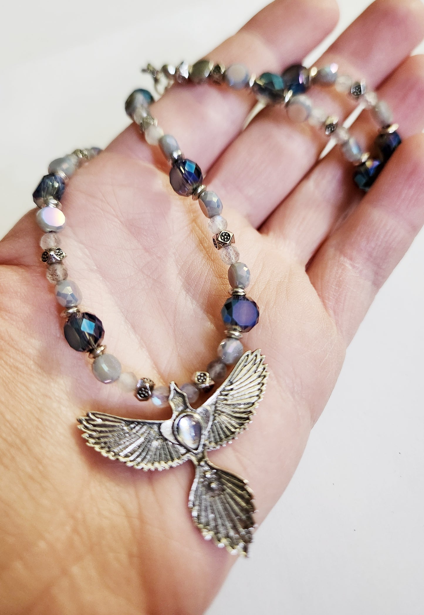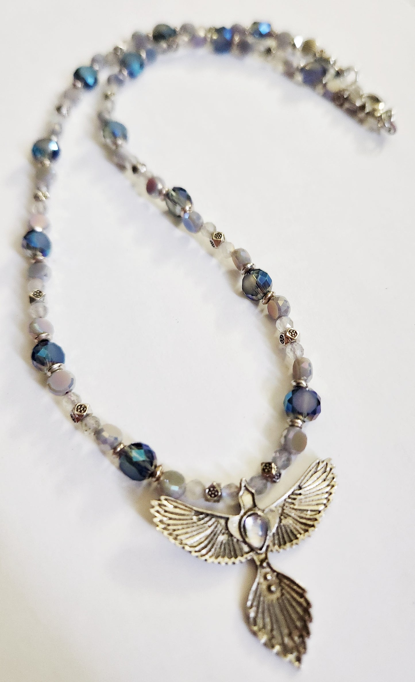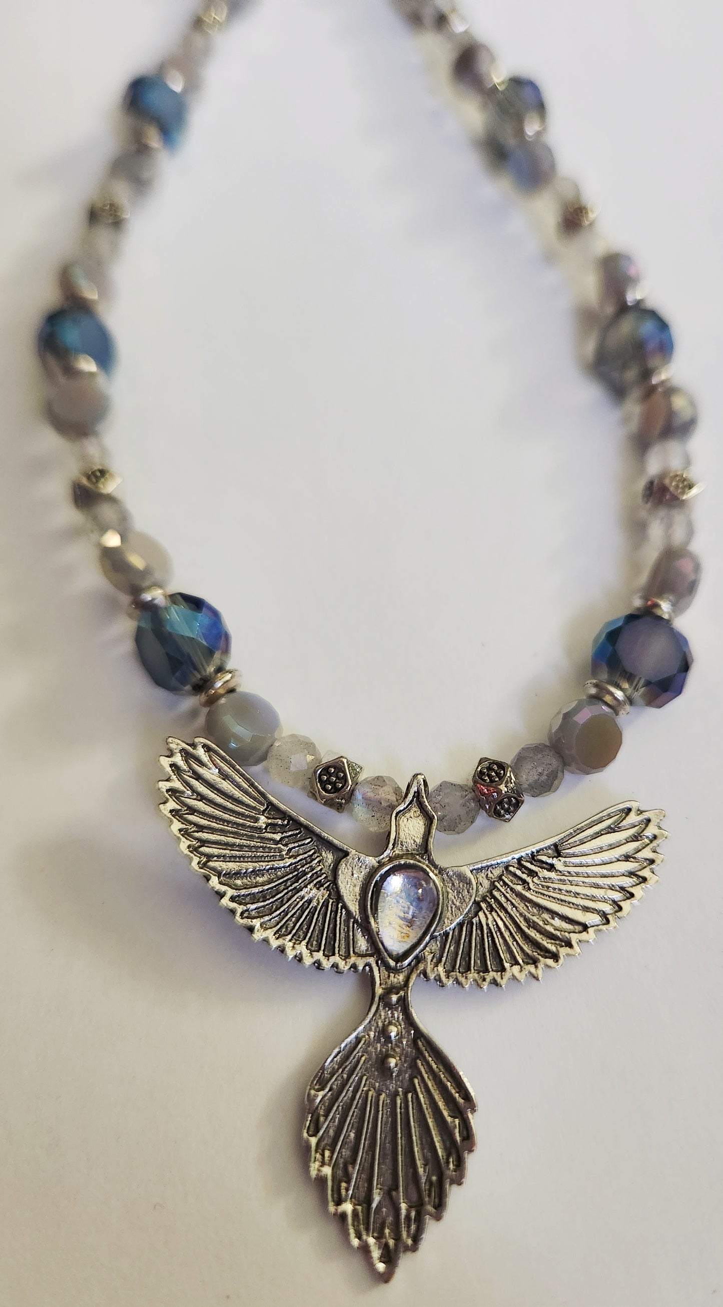 Phoenix necklace, mystical jewelry, silver necklace, beaded necklace, statement necklace, gift for bestie