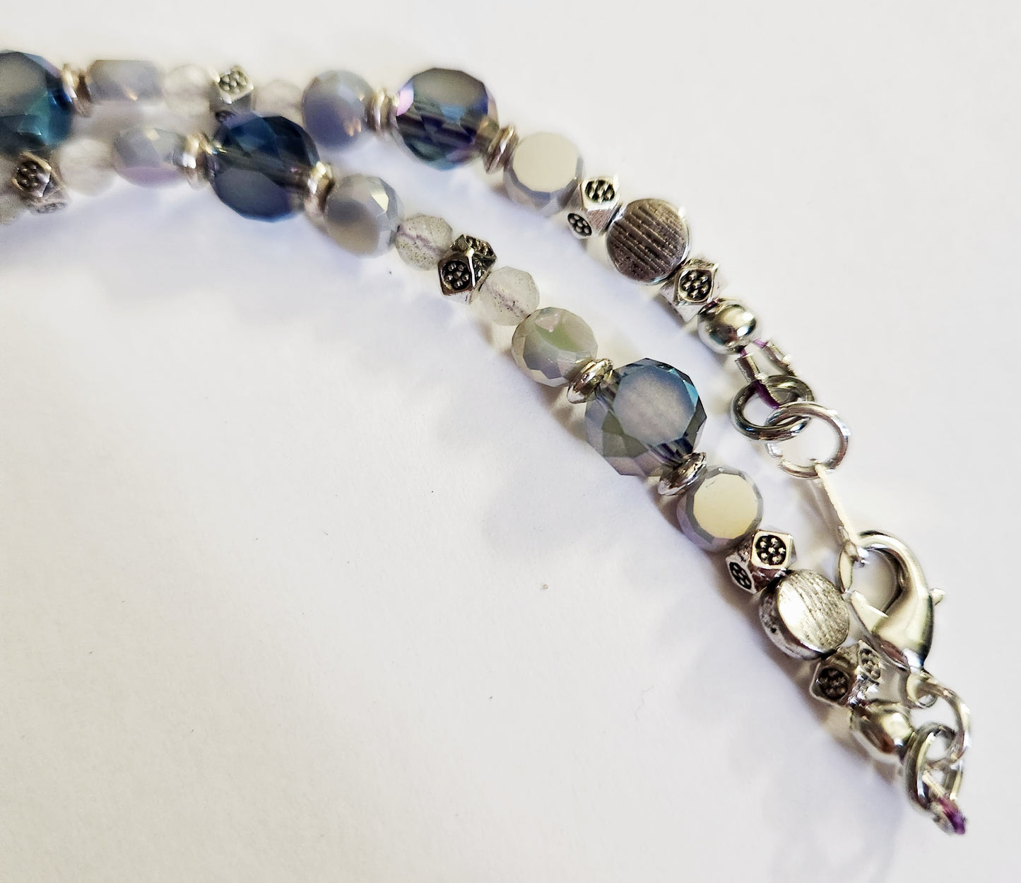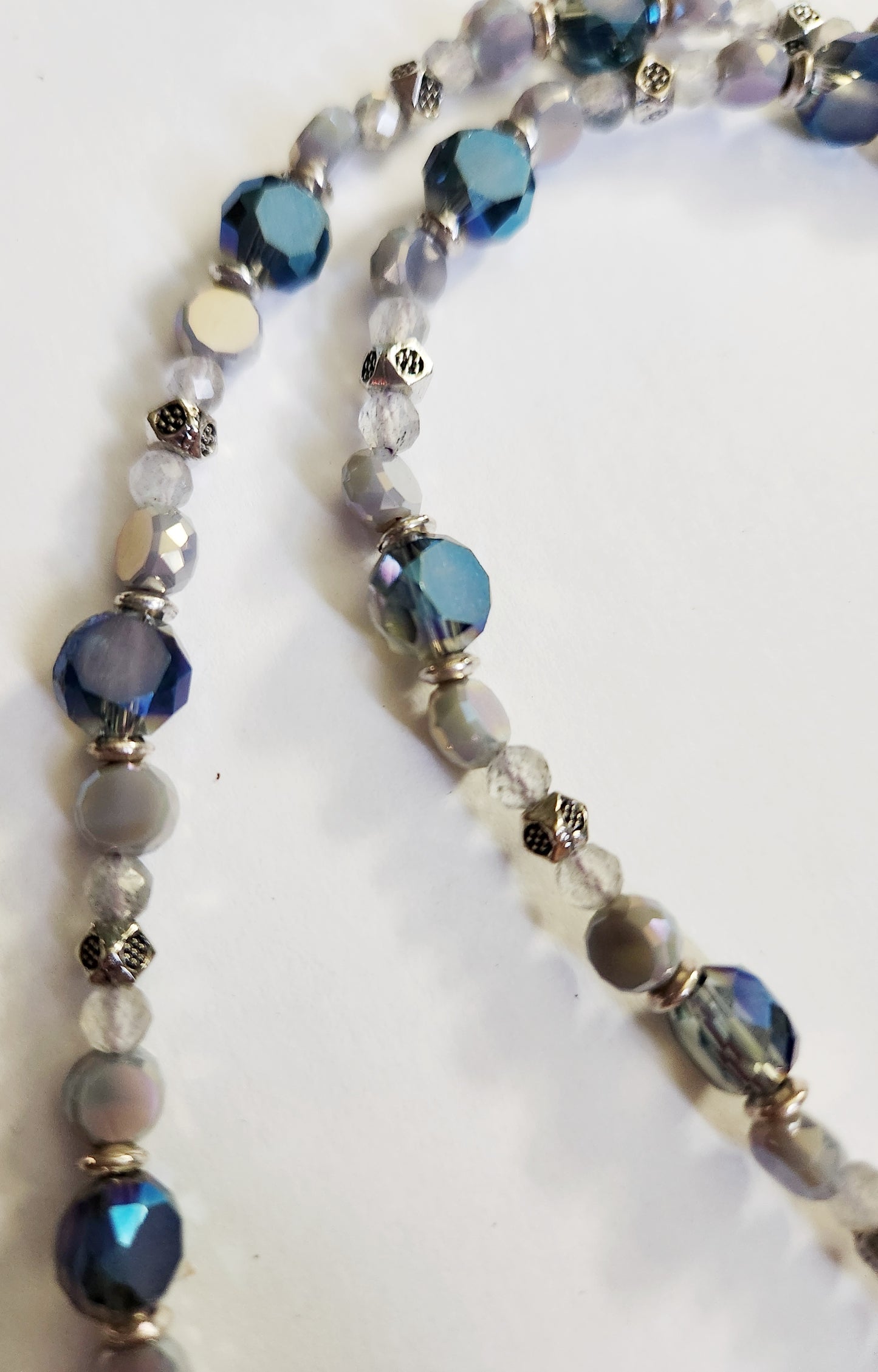 - Blue and rainbow glass beads